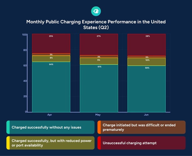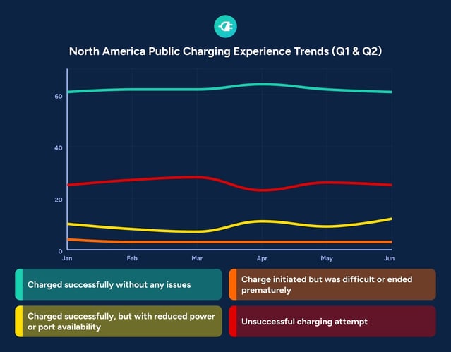 The second quarter of 2025 confirms that North America's public charging infrastructure is stabilizing at a performance level established over several quarters. While April made headlines with a record 64% success rate, the quarter as a whole tells a more nuanced story of continuity rather than breakthrough.