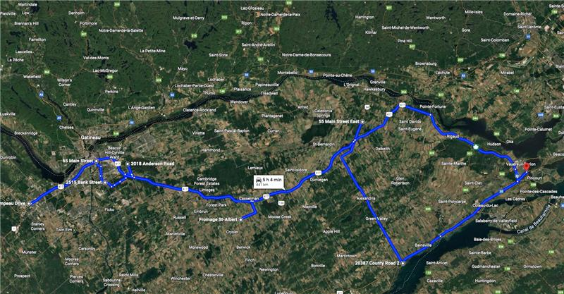 12 sites, de l’ouest de Montréal jusqu’à Ottawa (442 km parcourus)