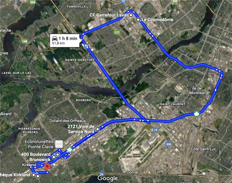 10 sites visités dans l’ouest de Montréal et Laval (62 km parcourus)
